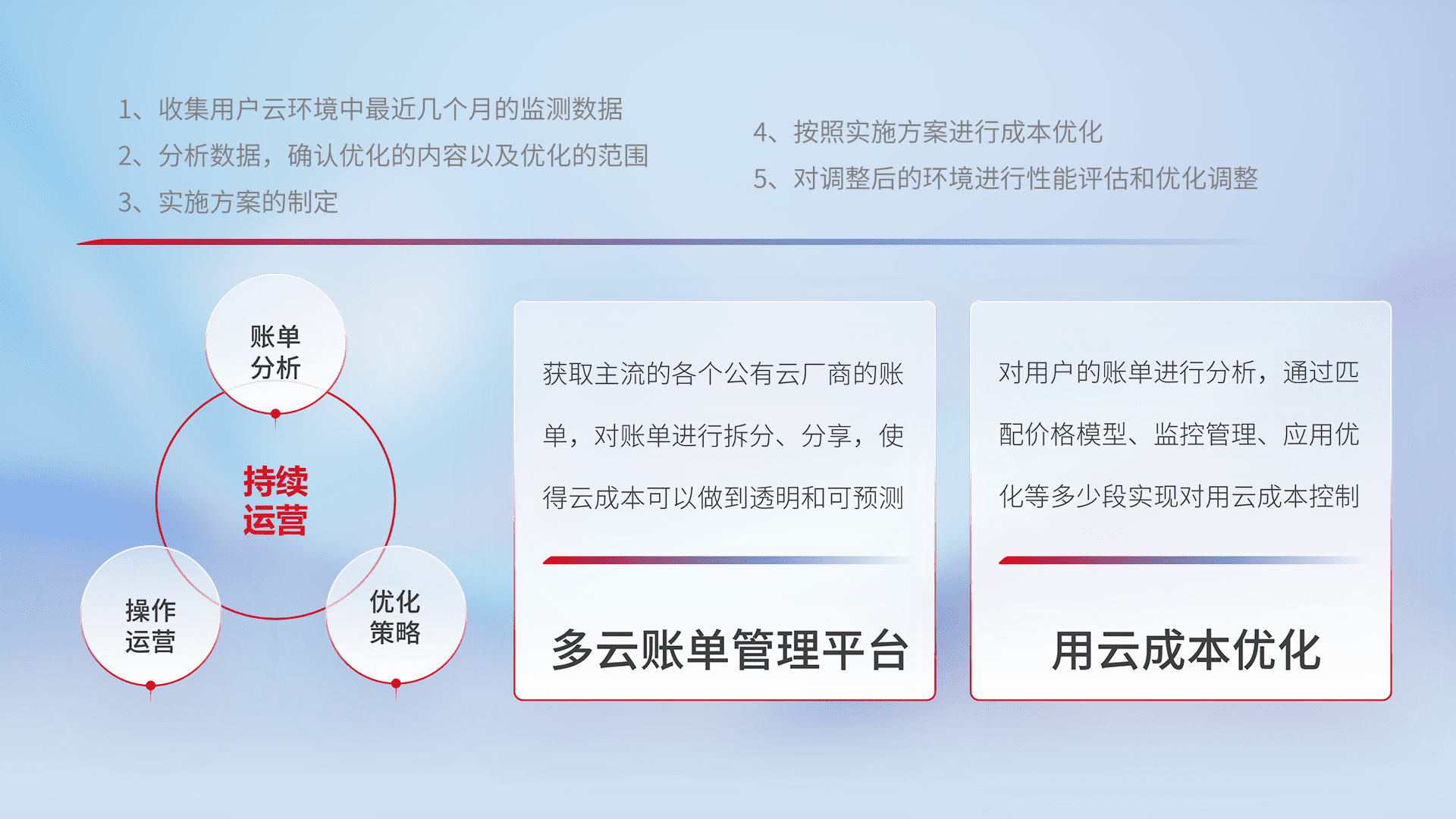 通过多云纳管,,,以统一的资源数据模型把客户的云资源进行抽象和封装,,进而实现对多云资源的统一操作,,,保障云资源管理的可靠性、、、、稳定性与可用性。。。。量身定制化运维内容,,,,配置、、、开发运维、、、、补丁管理、、、、备份、、、、监控、、、、认证和访问管理、、、、审计和日常巡检等,,,,保障在用云过程中的可靠度,,稳定度以及高可用率。。。。